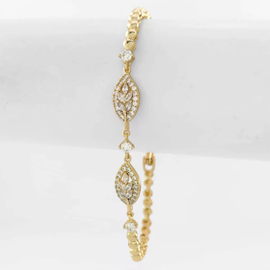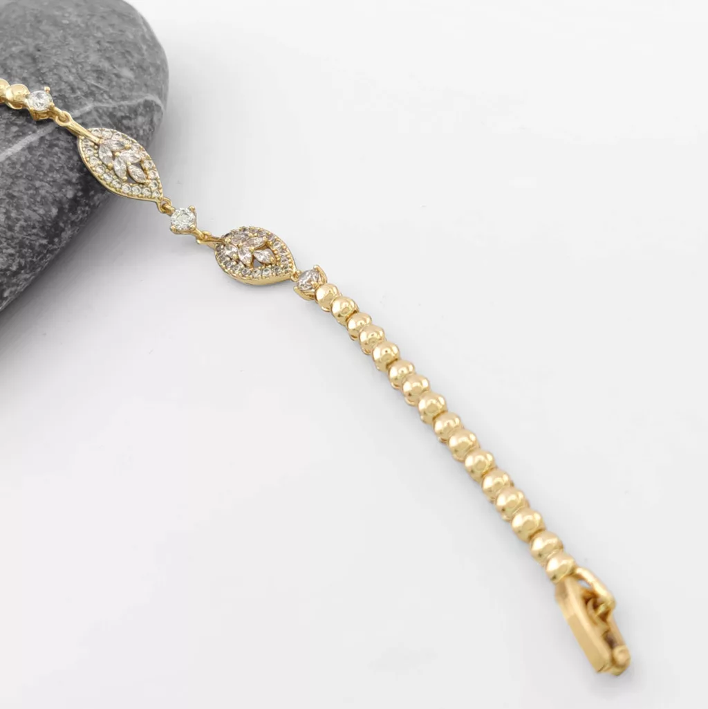 Aranysárga színű karkötő, melyet fehér cirkónia kristályok tesznek csillogóvá.
