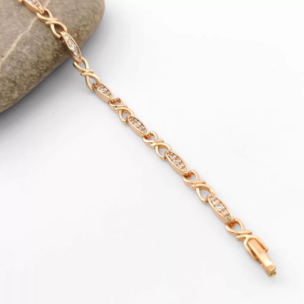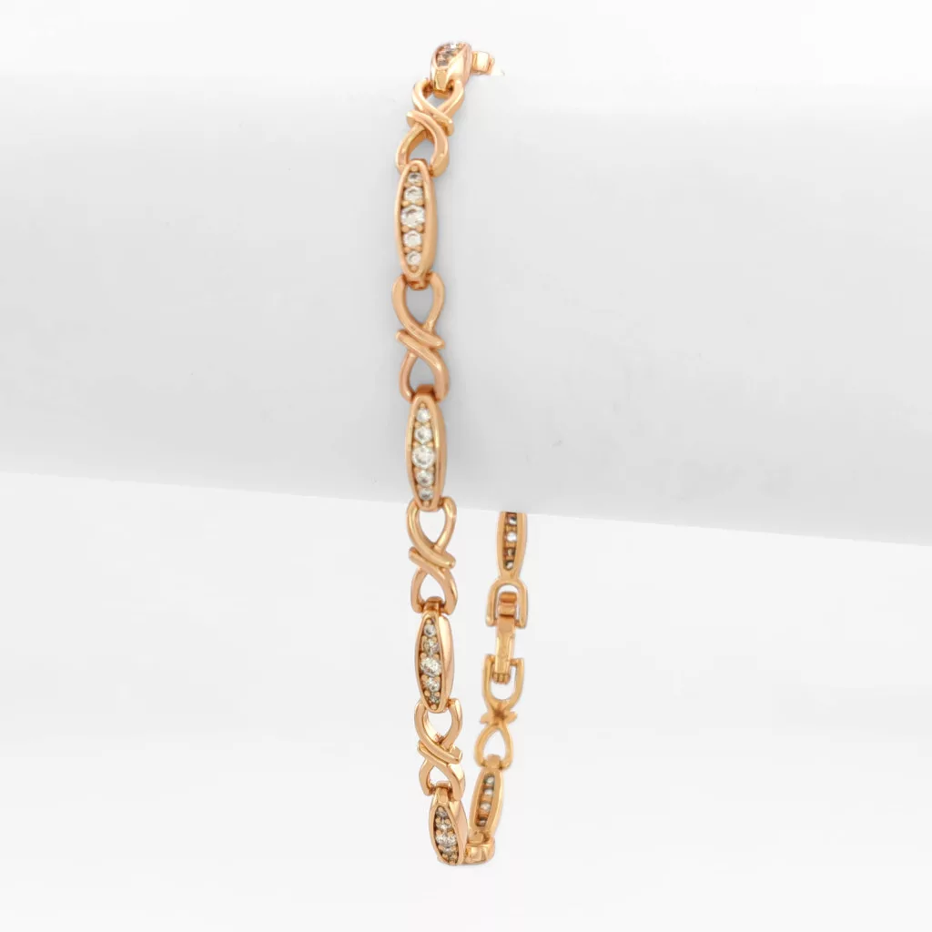 Aranyszínű karkötő, melyet fehér cirkónia kristályok tesznek csillogóvá.