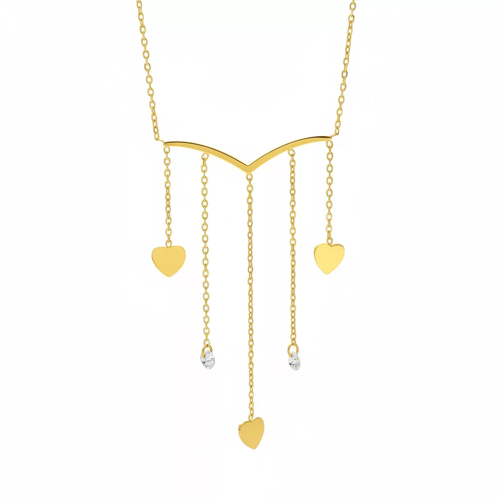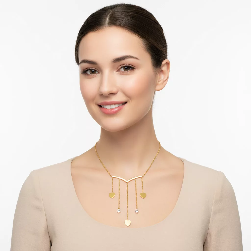Aranyszínű nemesacél ( 316L ) nyakék jellegű nyaklánc fehér kristályos és szív alakú medállal.
