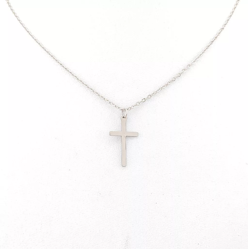 Ezüstszínű nemesacél (316L) nyaklánc, nemesacél kereszt medállal.