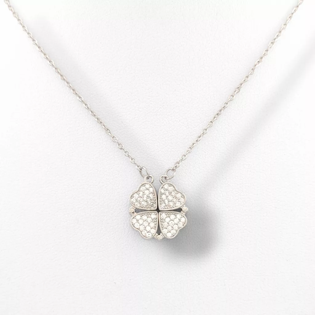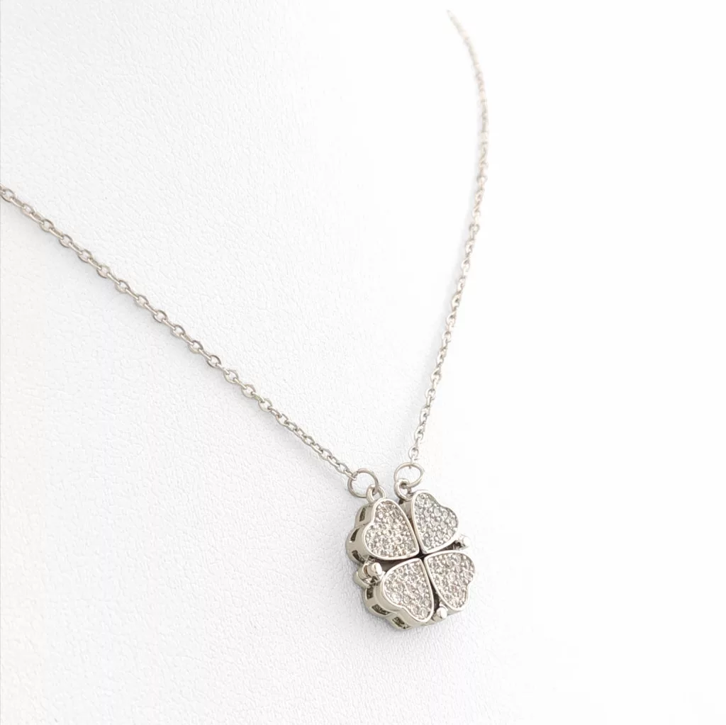 A medál egyik formája stilizált négylevelű lóhere, másik formájában négy összefűzött szivet mintáz. A medált mágnes tartja össze, hogy a lóhere minta fix maradjon, nem nyílik szét.