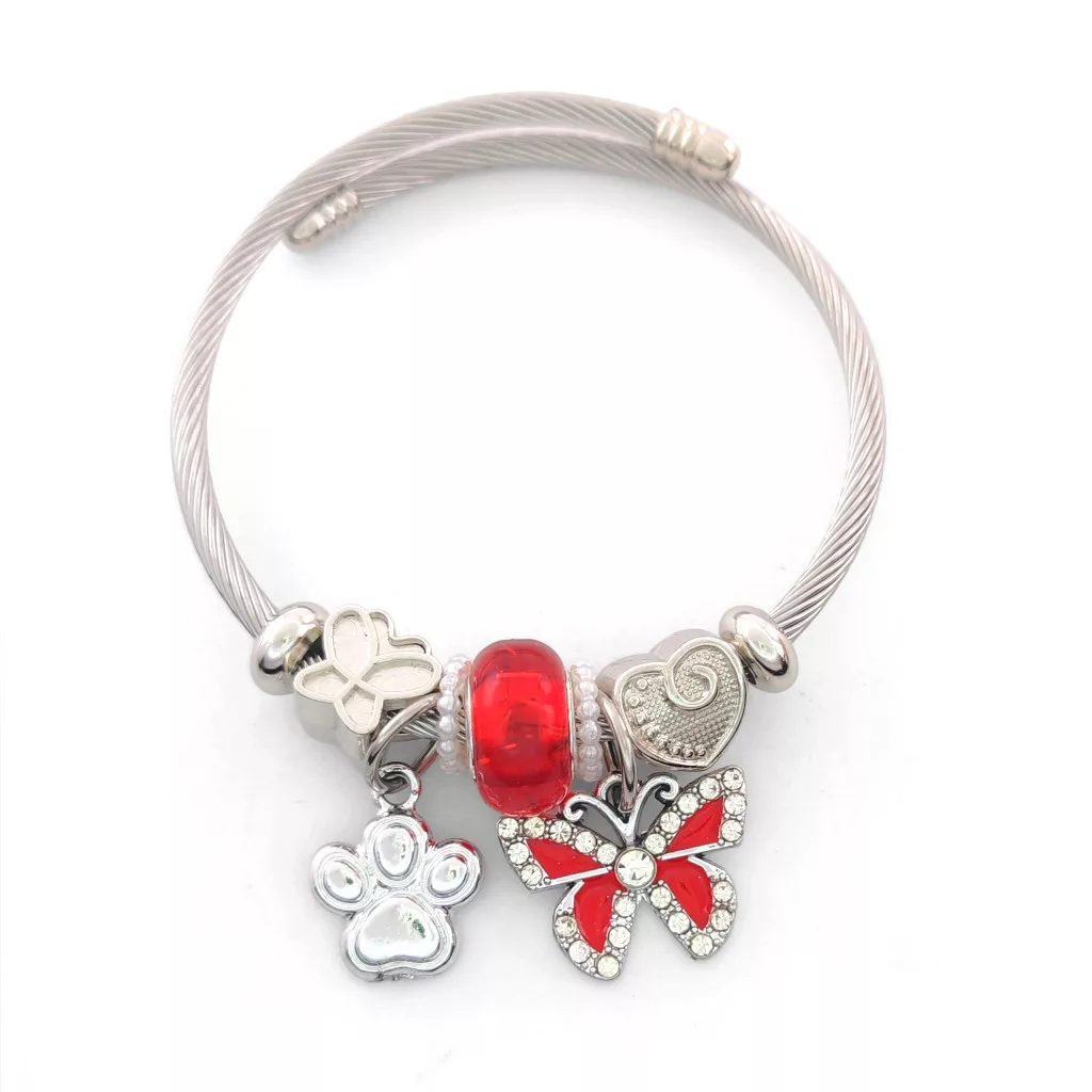 Ezüstszínű nemesacél pandora jellegű karperec pillangó charmokkal