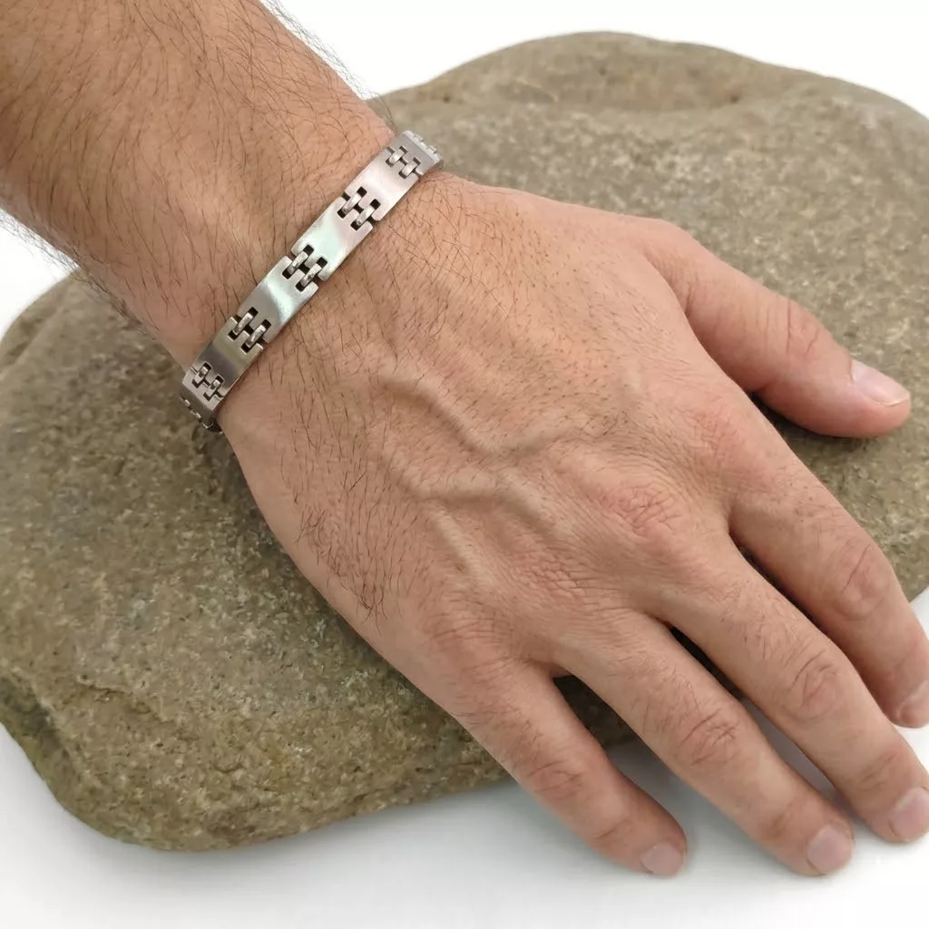 Ezüst színű titán ( 316L ) karkötő mágnessel.