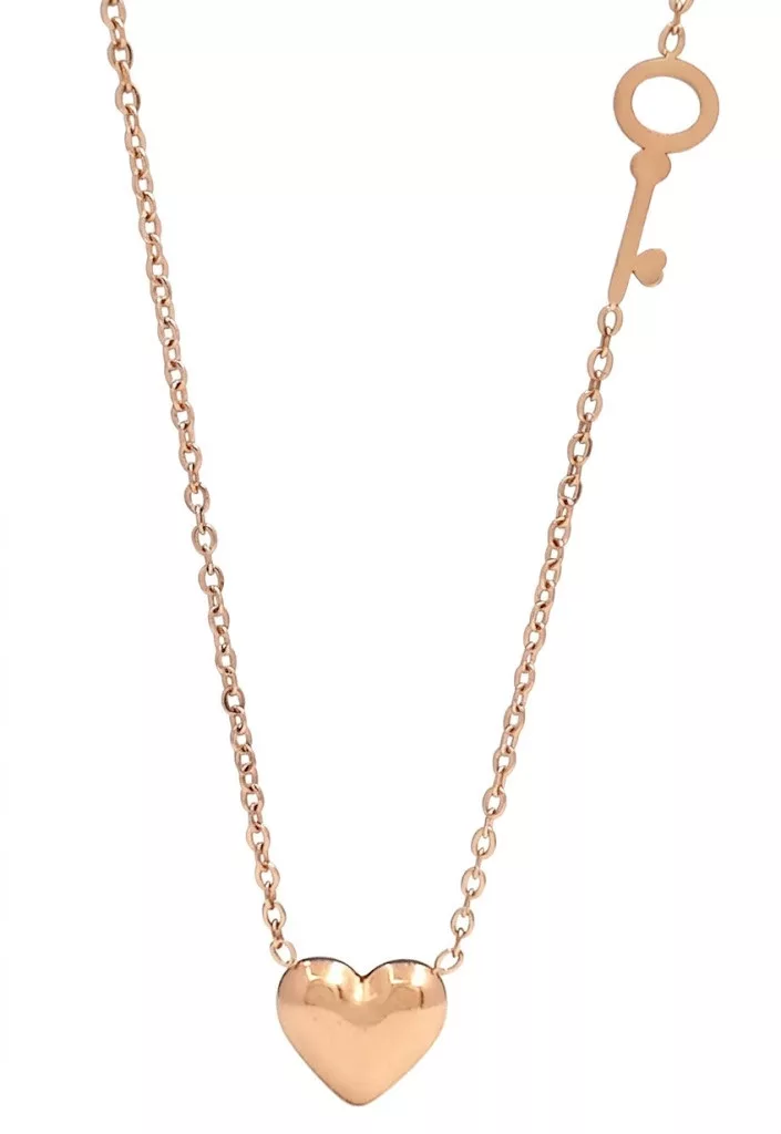 Rose gold színű nemesacél ( 316L ) nyaklánc, nemesacél ( 316L ) szív és kulcs medállal.