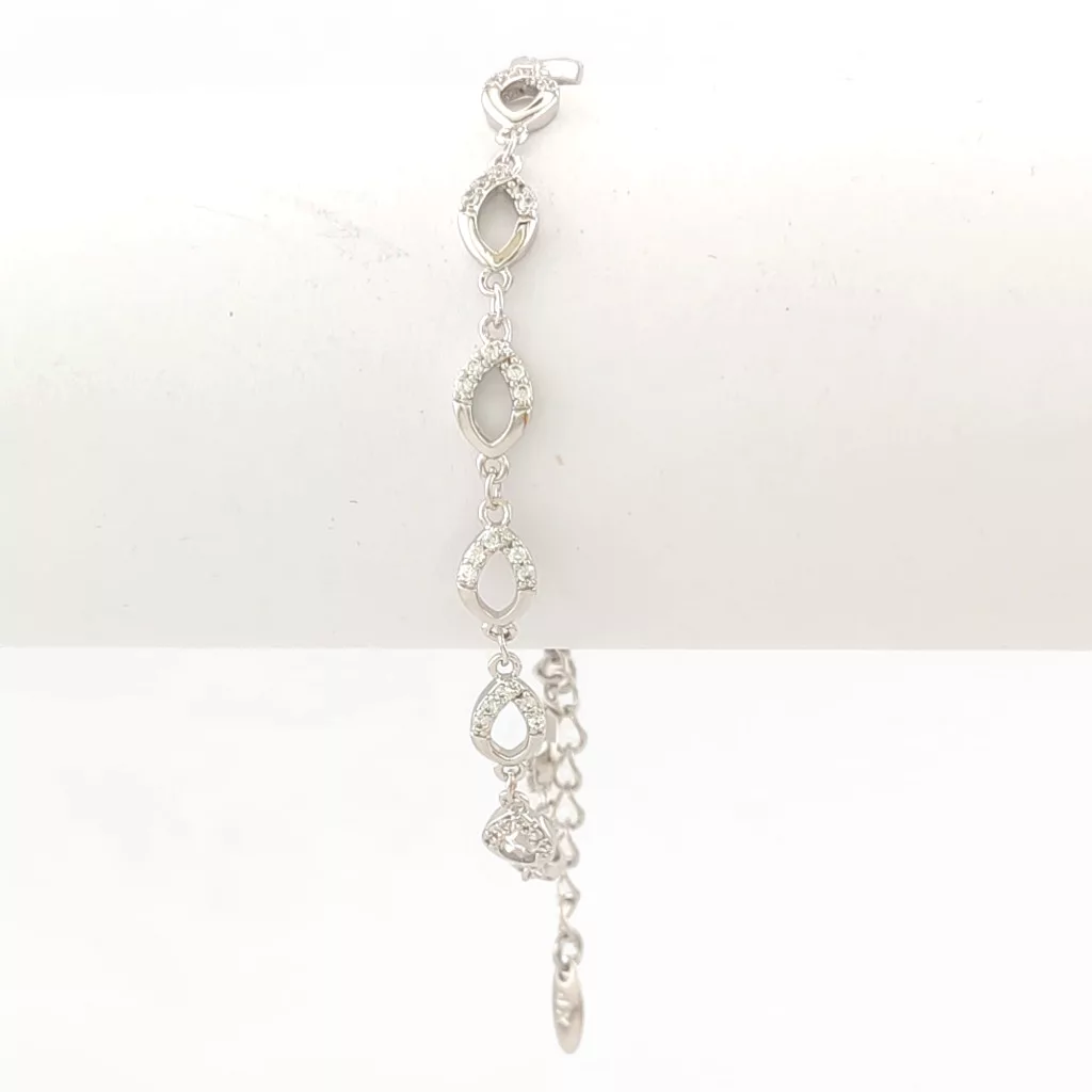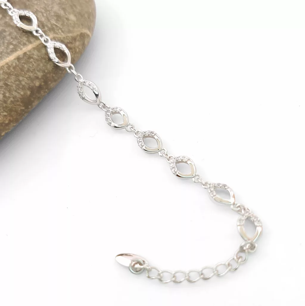 Ezüstszínű karkötő, melyet fehér cirkónia kristályok tesznek csillogóvá.