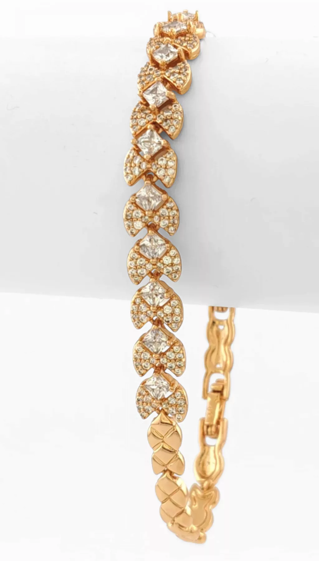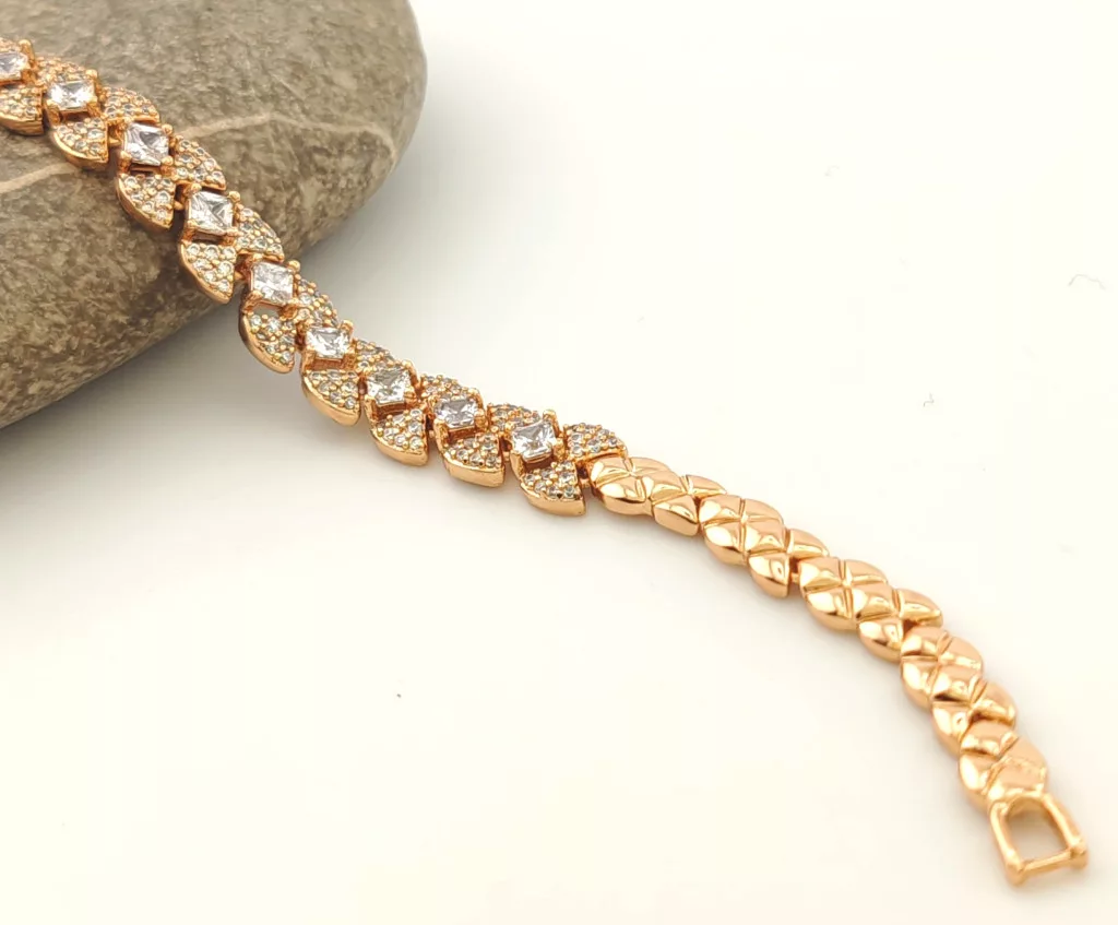Aranyszínű karkötő, melyet fehér cirkónia kristályok tesznek csillogóvá.