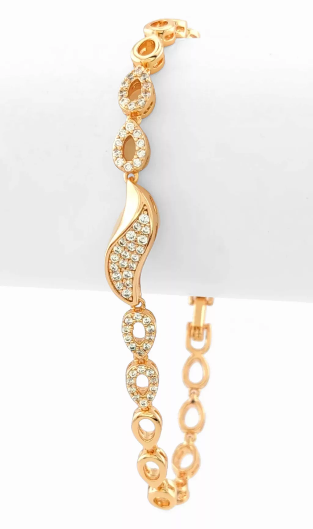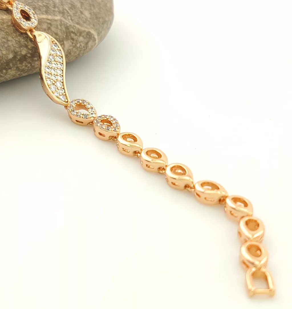 Aranyszínű karkötő, melyet fehér cirkónia kristályok tesznek csillogóvá.