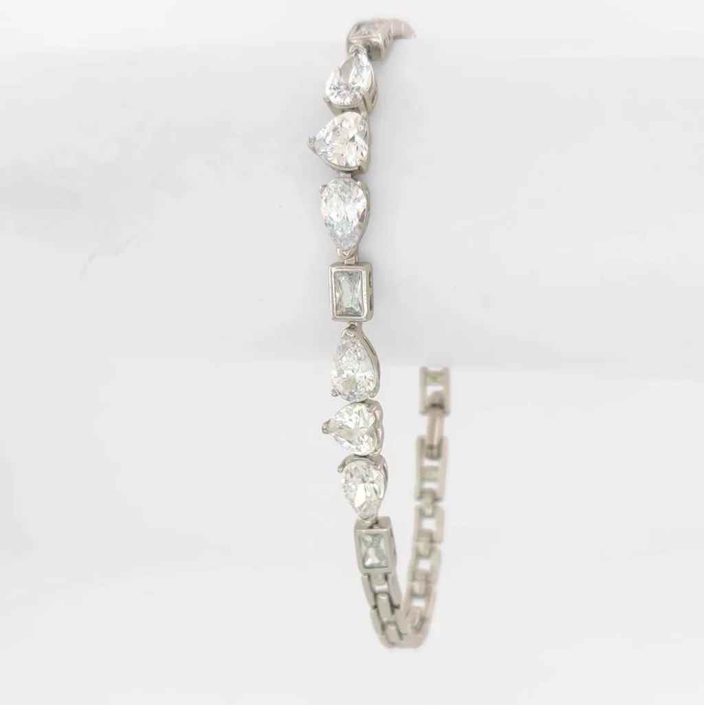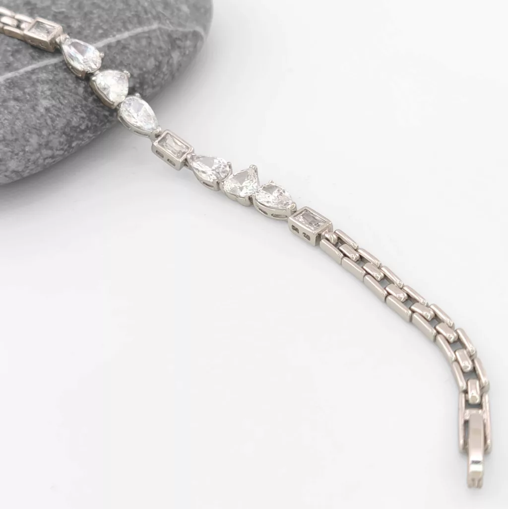 Ezüstszínű karkötő, melyet fehér cirkónia kristályok tesznek csillogóvá.