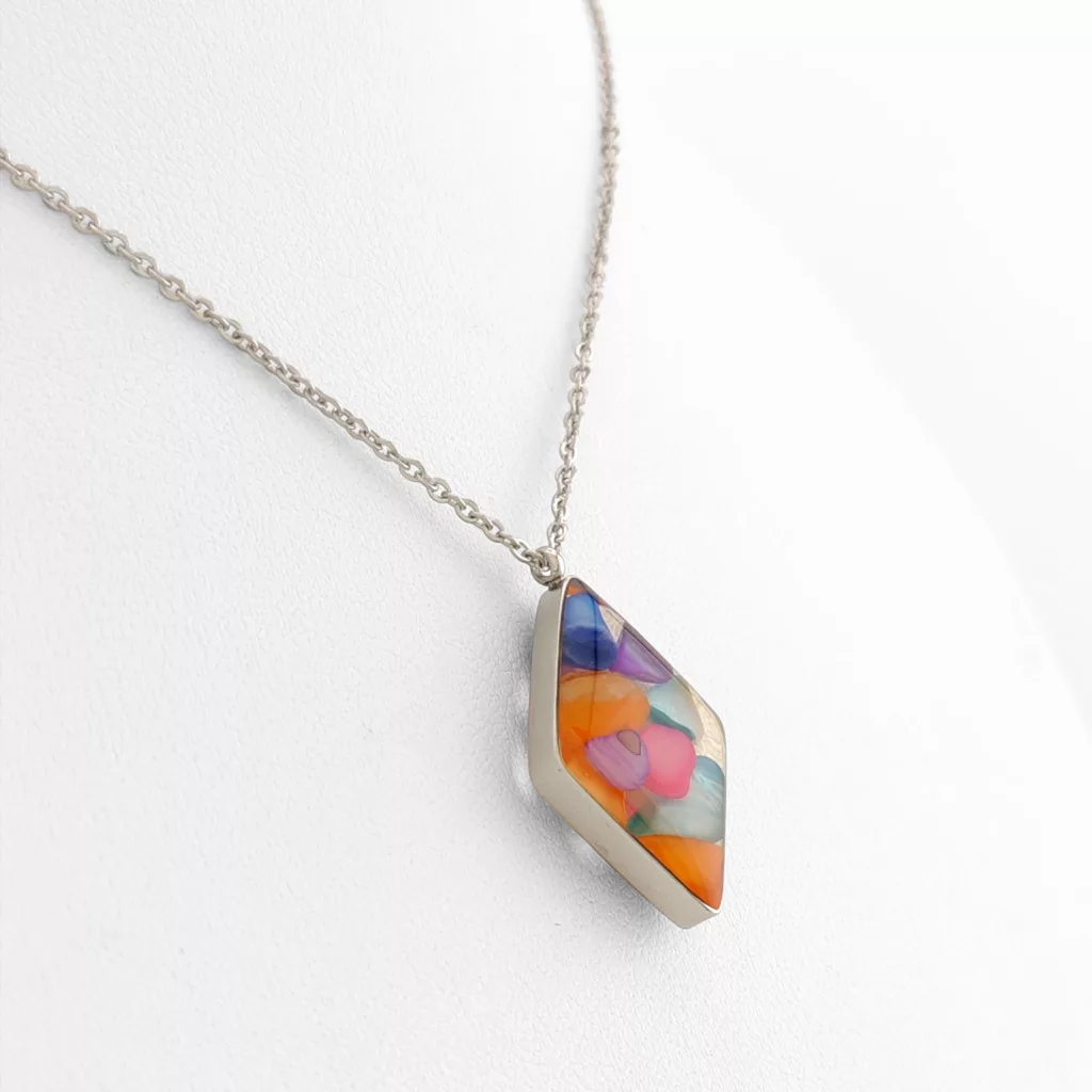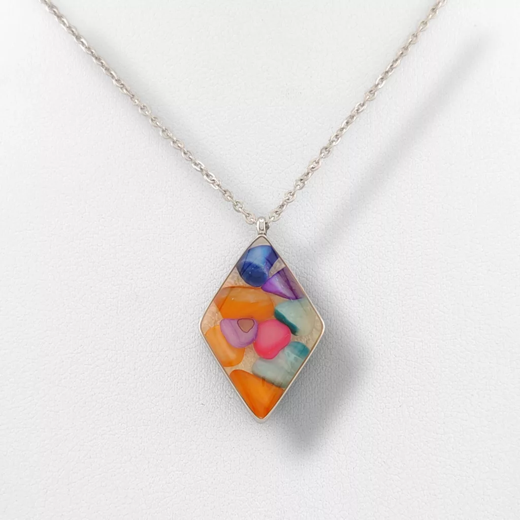 Ezüstszínű nemesacél ( 316L ) nyaklánc, színes lencse medállal.