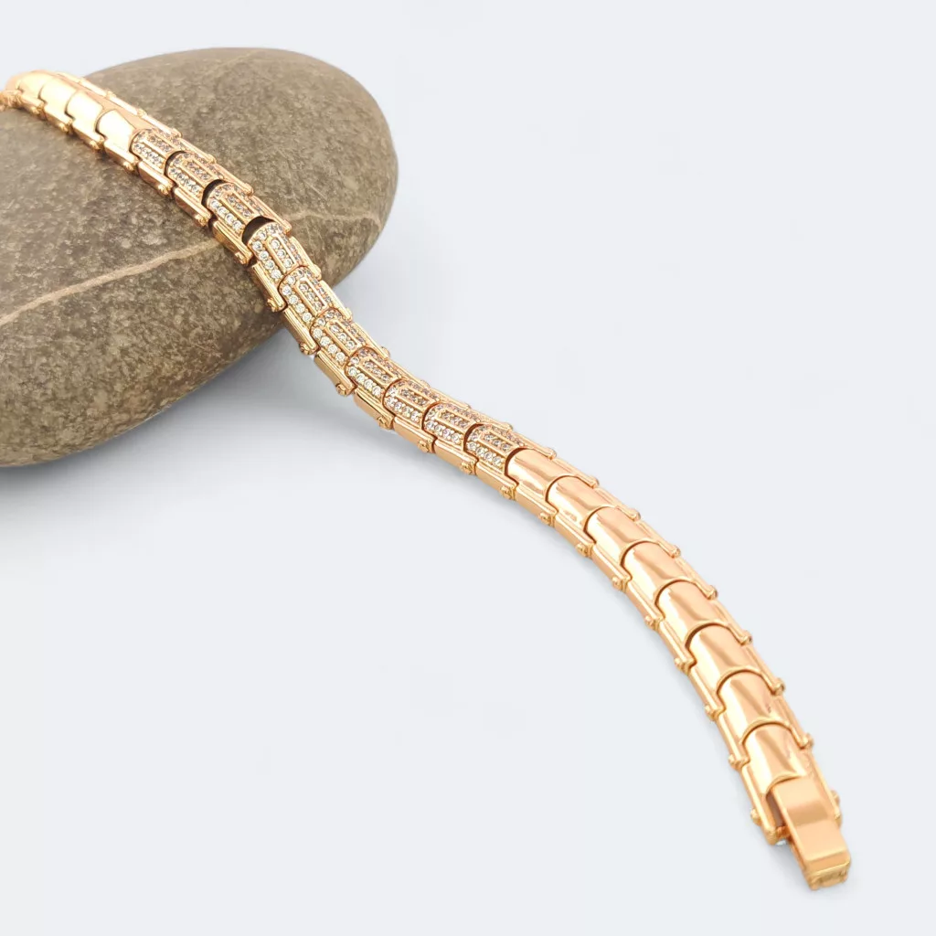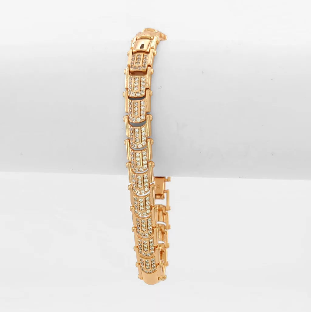 Aranyszínű karkötő, melyet fehér cirkónia kristályok tesznek csillogóvá.