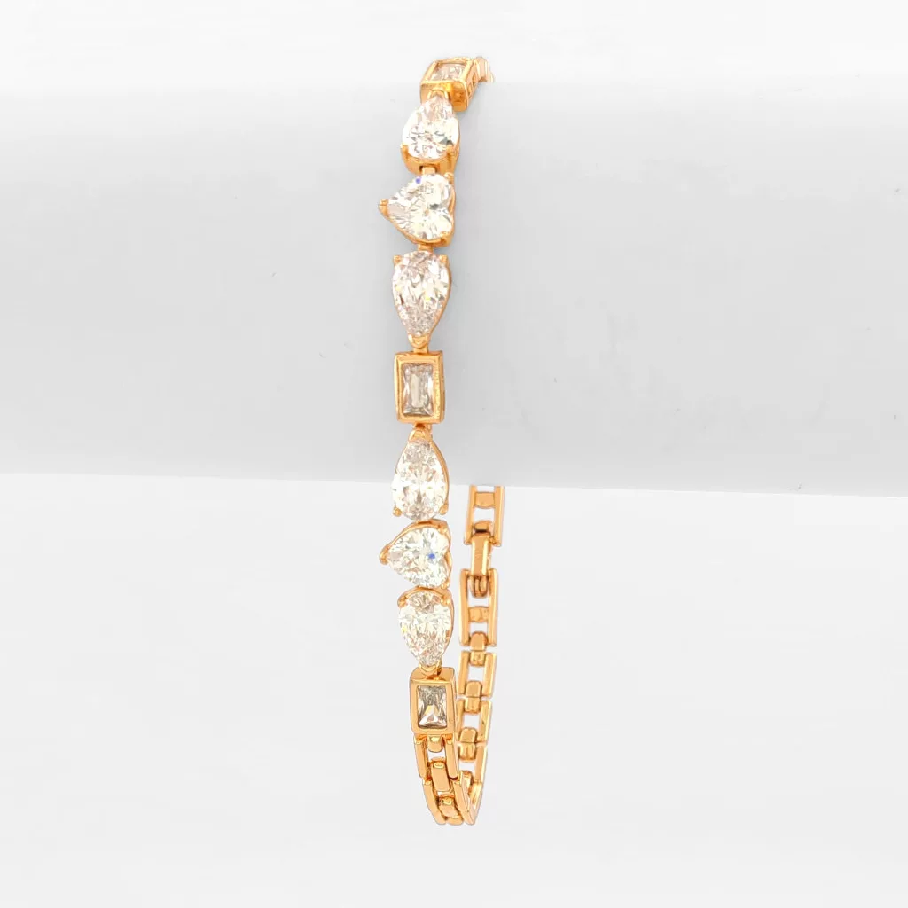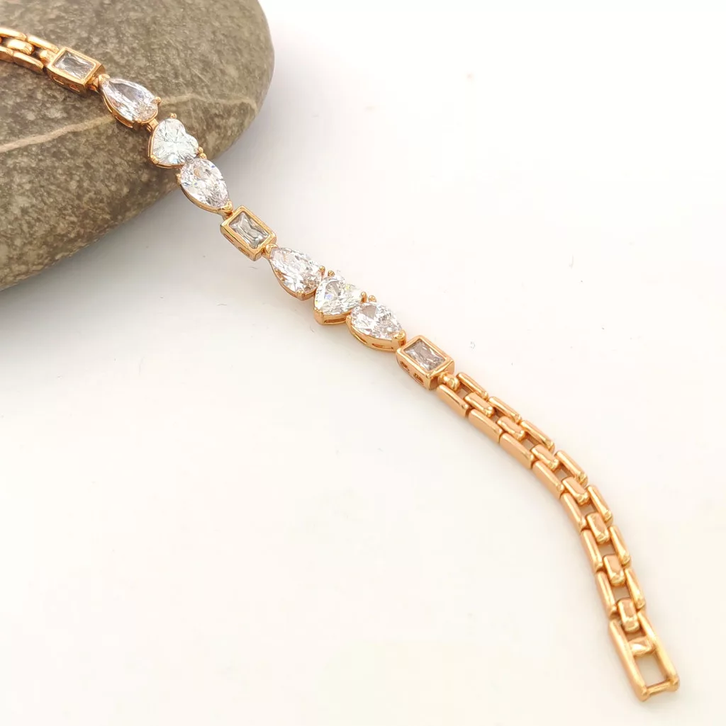 Aranyszínű karkötő, melyet fehér cirkónia kristályok tesznek csillogóvá.