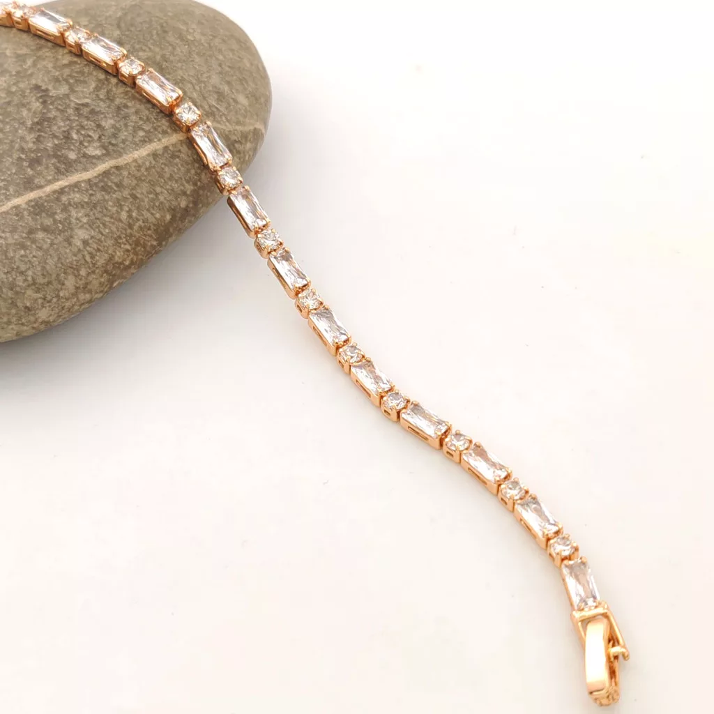 Aranyszínű karkötő, melyet fehér cirkónia kristályok tesznek csillogóvá.