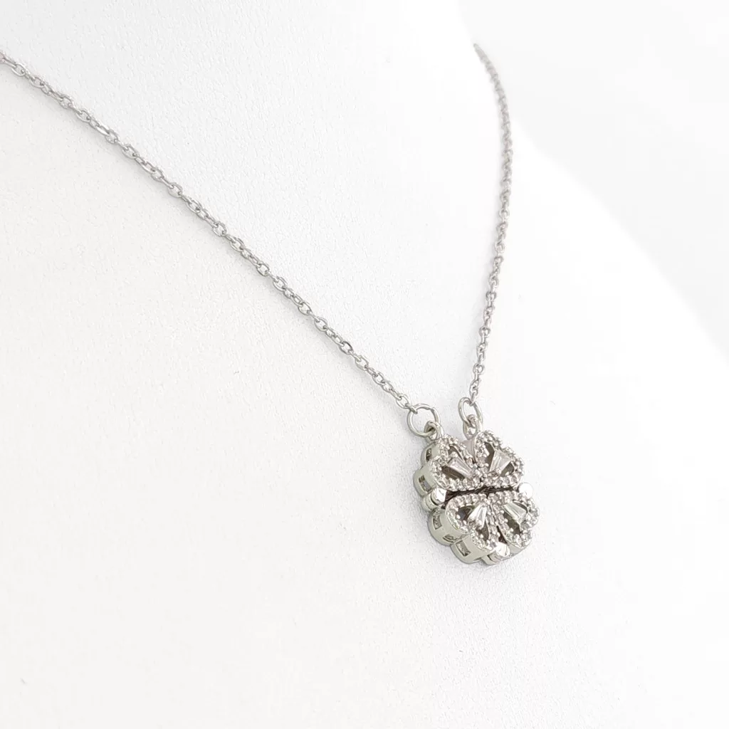 A medál egyik formája stilizált négylevelű lóhere, másik formájában négy összefűzött szivet mintáz. A medált mágnes tartja össze, hogy a lóhere minta fix maradjon, nem nyílik szét.