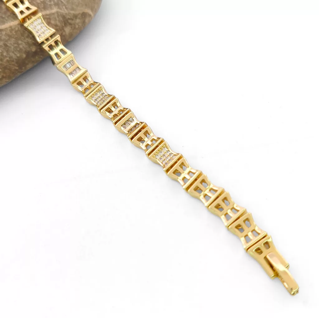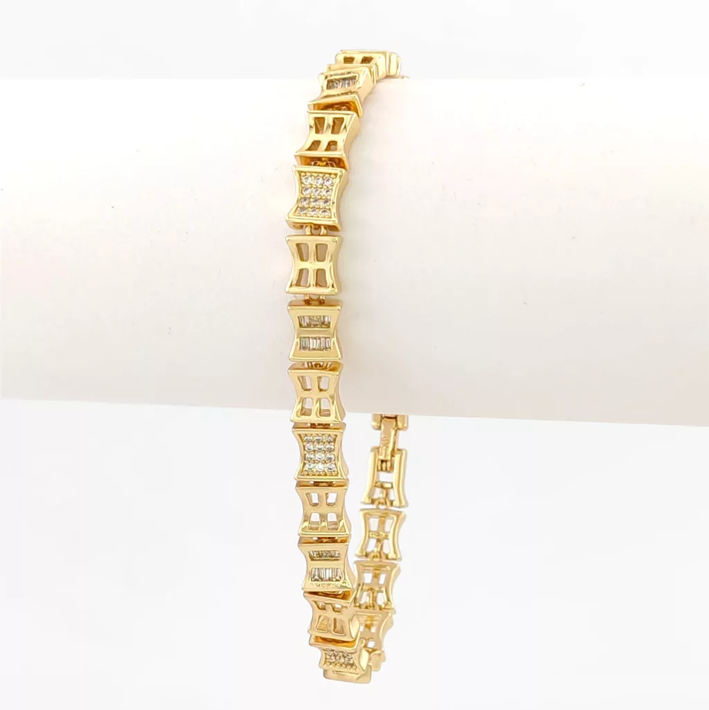 Aranysárga színű karkötő, melyet fehér cirkónia kristályok tesznek csillogóvá.