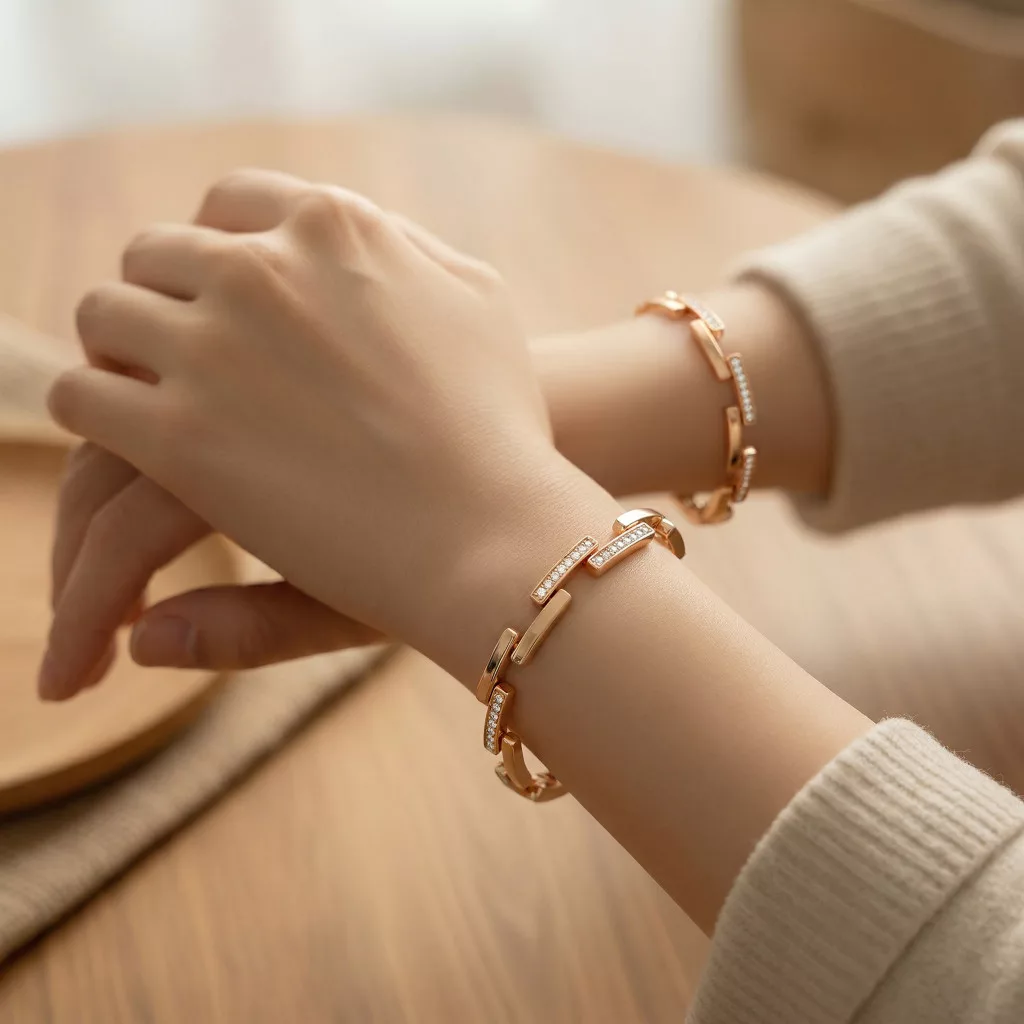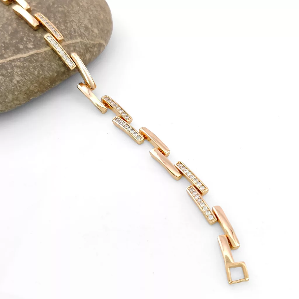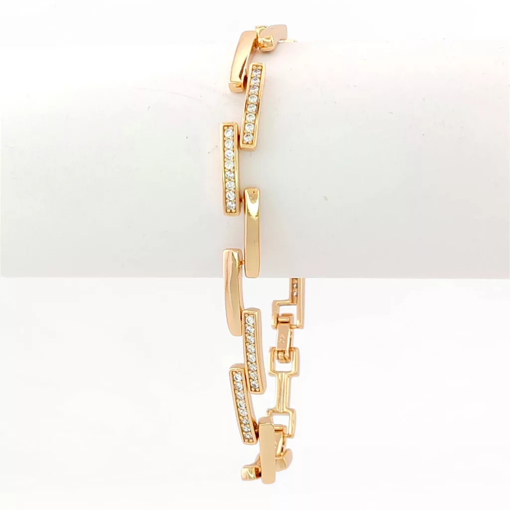 Aranyszínű karkötő, melyet fehér cirkónia kristályok tesznek csillogóvá.