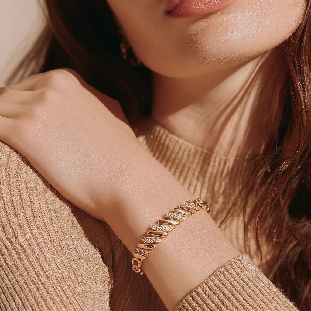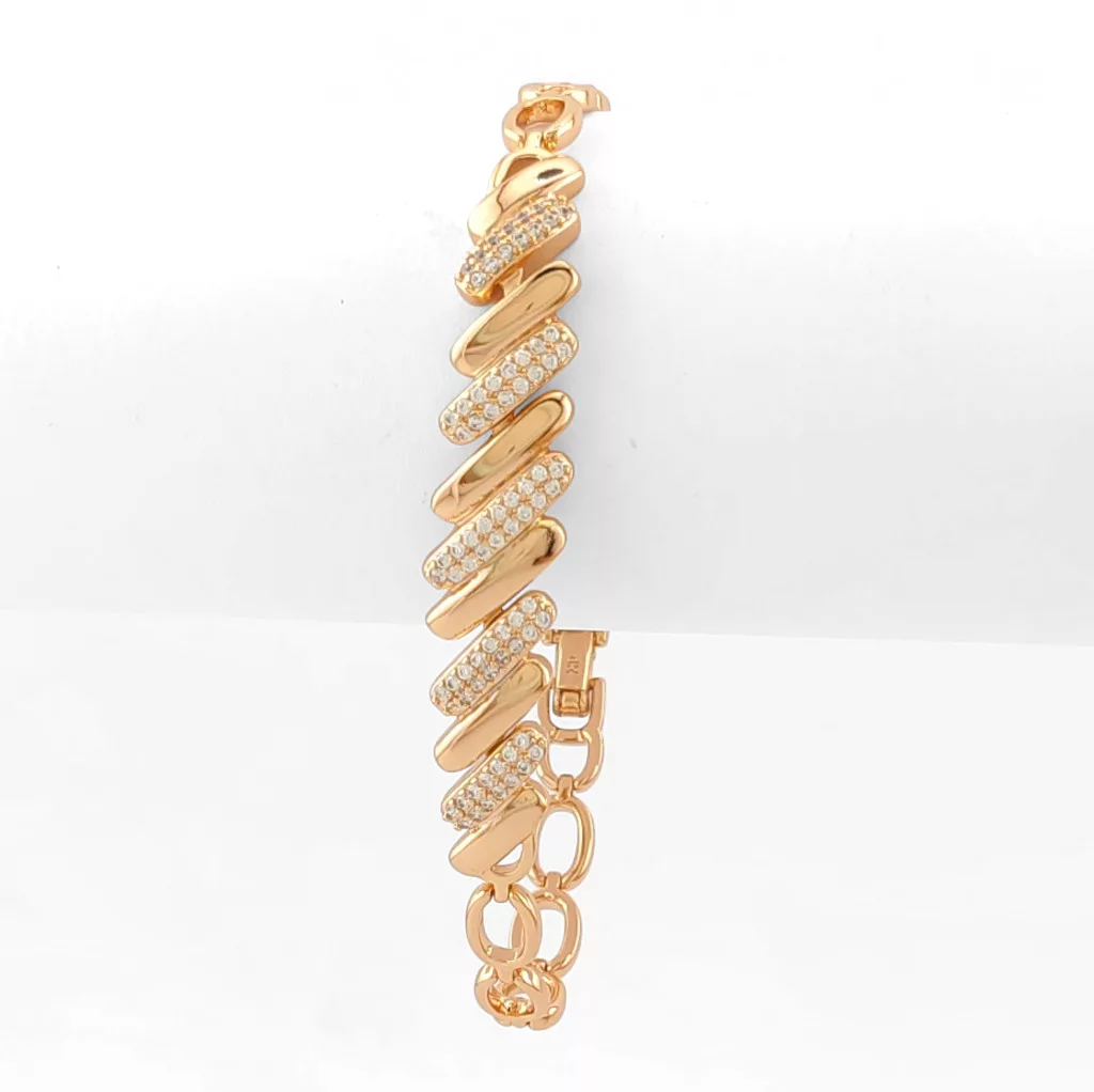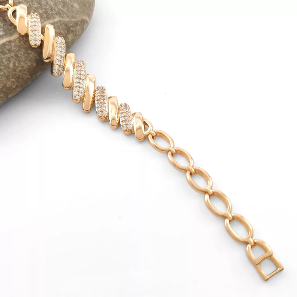 Aranyszínű karkötő, melyet fehér cirkónia kristályok tesznek csillogóvá.
