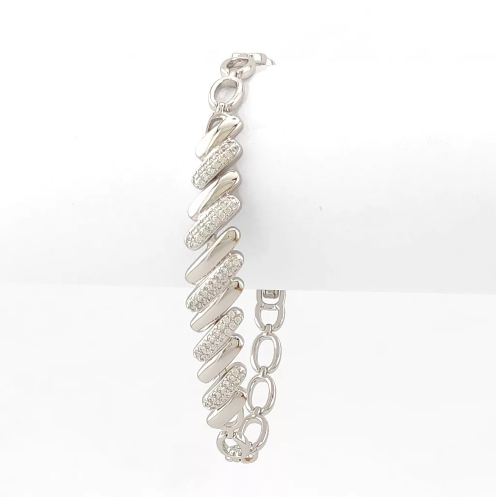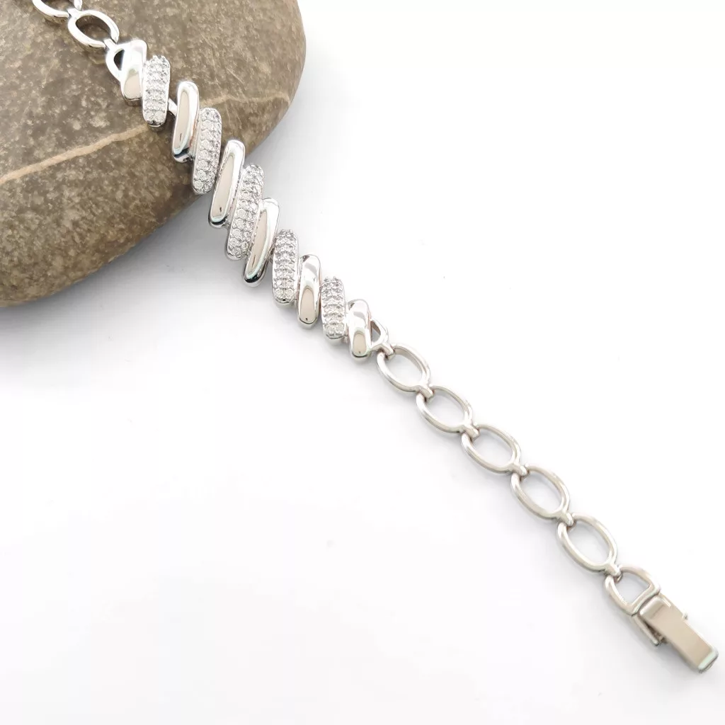 Ezüstszínű karkötő, melyet fehér cirkónia kristályok tesznek csillogóvá.
