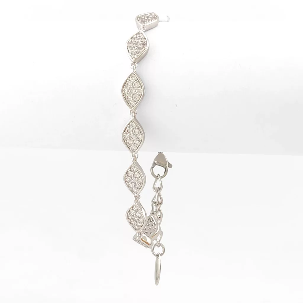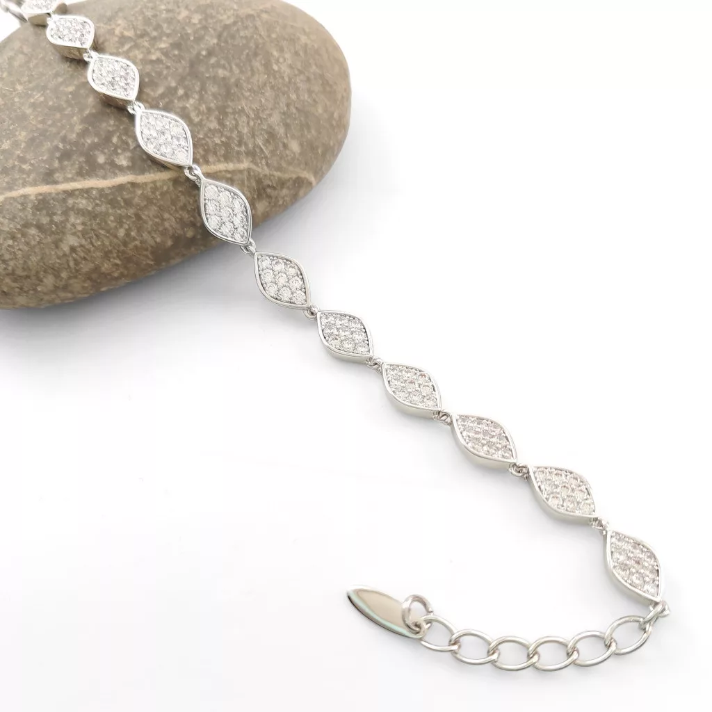 Ezüstszínű karkötő, melyet fehér cirkónia kristályok tesznek csillogóvá.