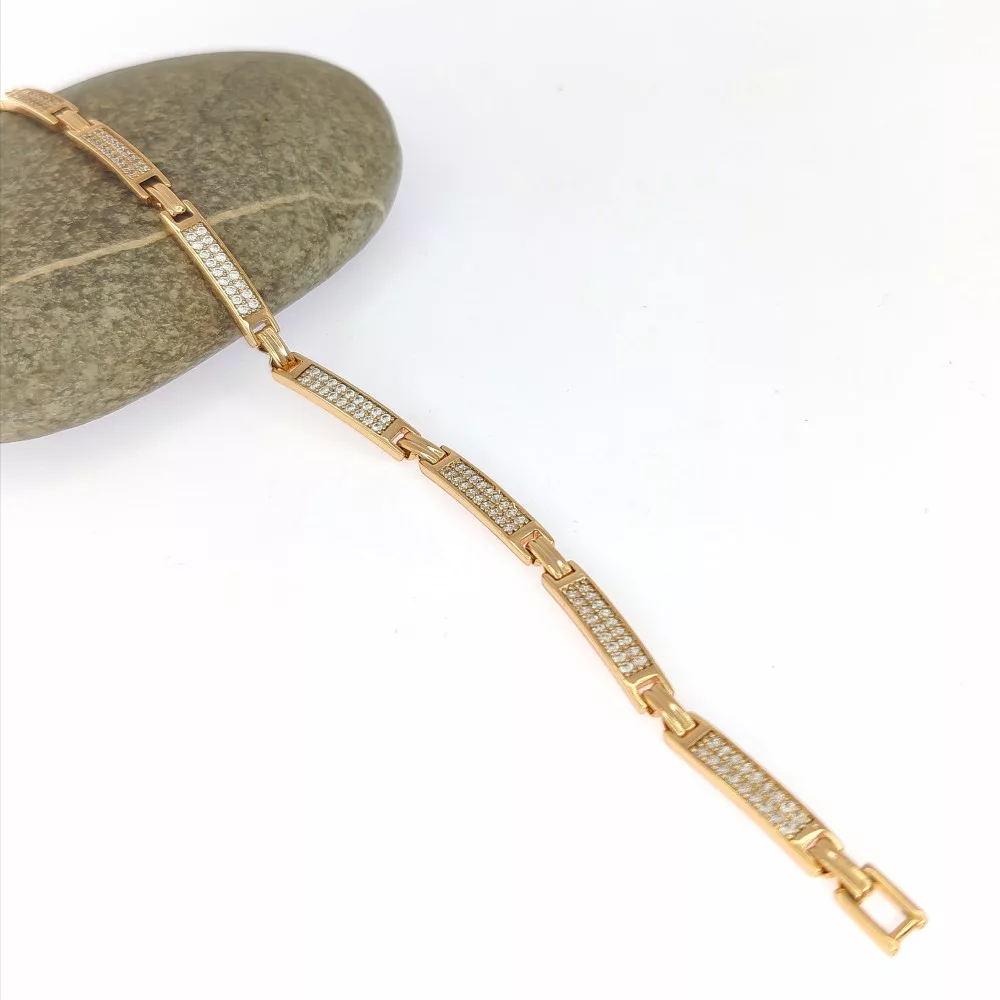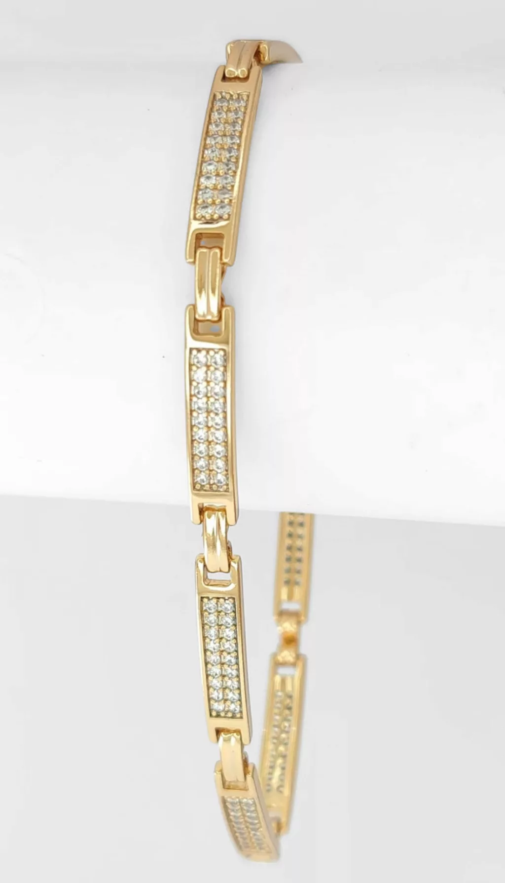 Aranyszínű karkötő, melyet fehér cirkónia kristályok tesznek csillogóvá.