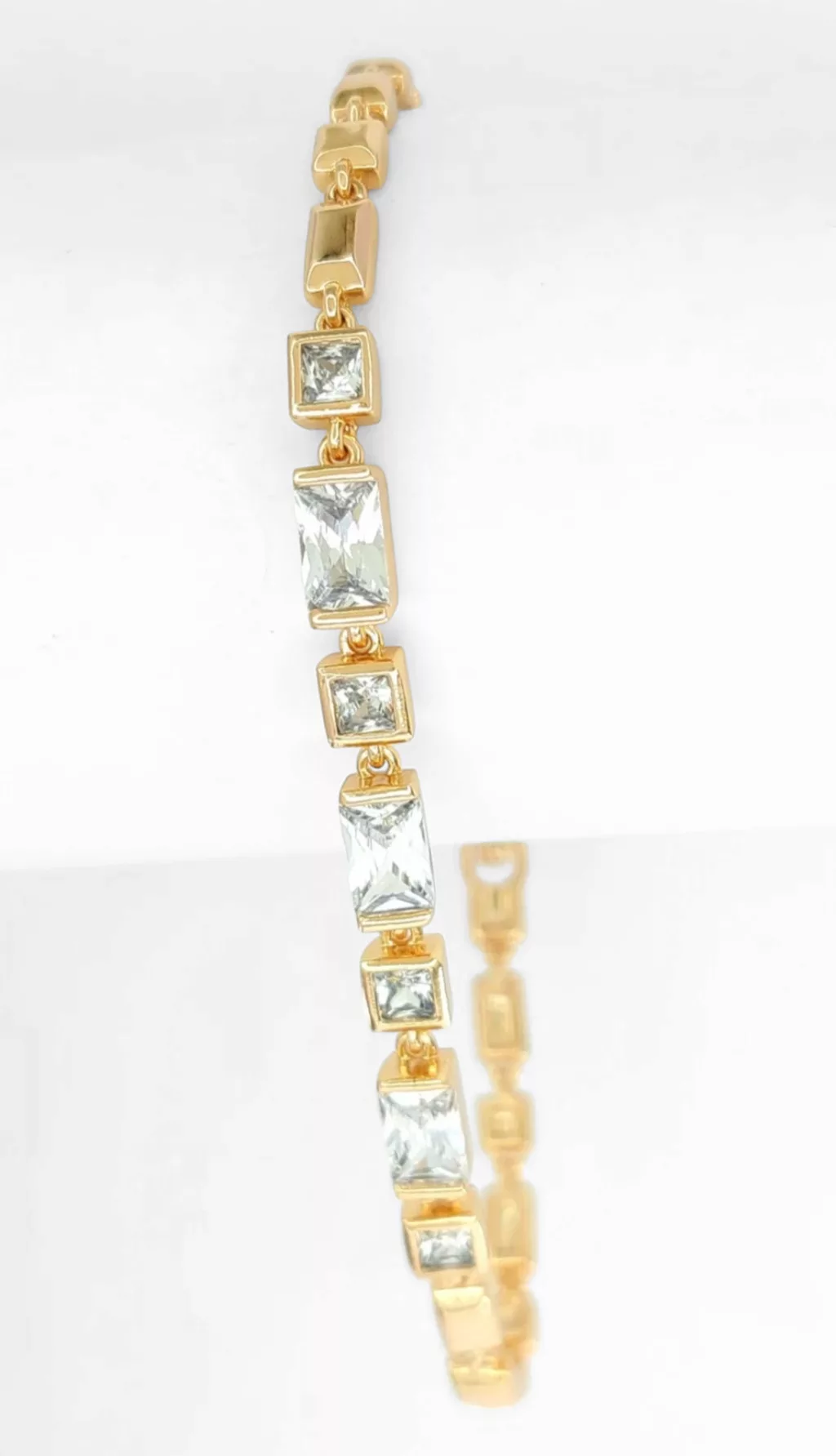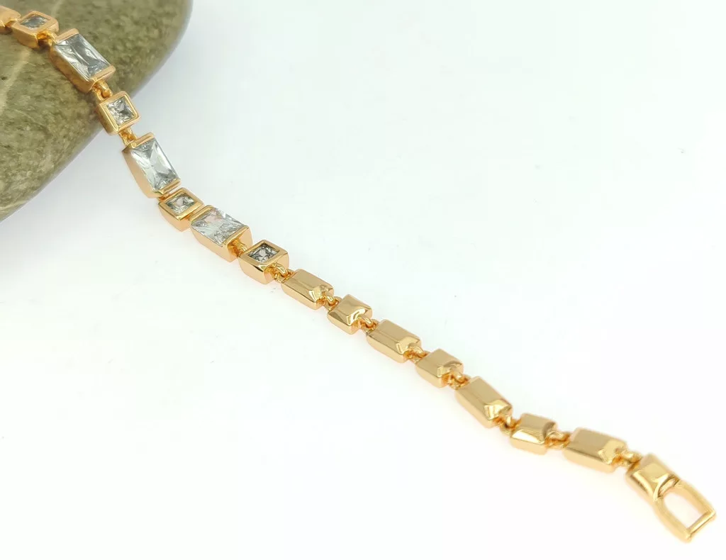 Aranyszínű karkötő, melyet fehér cirkónia kristályok tesznek csillogóvá.